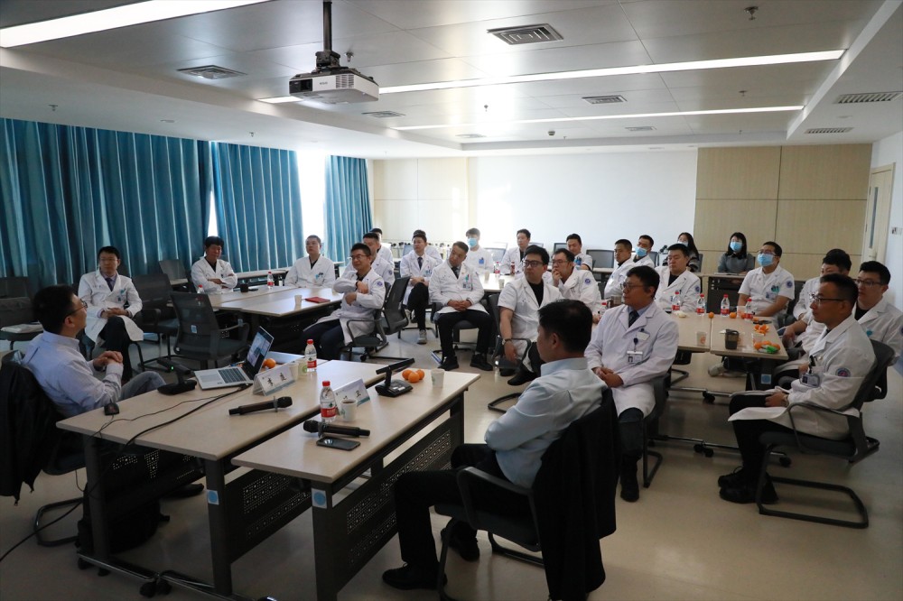 仪式后,李庭教授与我院创伤急救外科的医生们在住院楼12楼会议室进行了疑难病例讨论和手术交流。李庭教授进行了细致指导,并对我院ERAS(加速康复病房)的设置以及诊疗流程给予了建议,尤其在老年创伤骨科将给予我院大力支持。