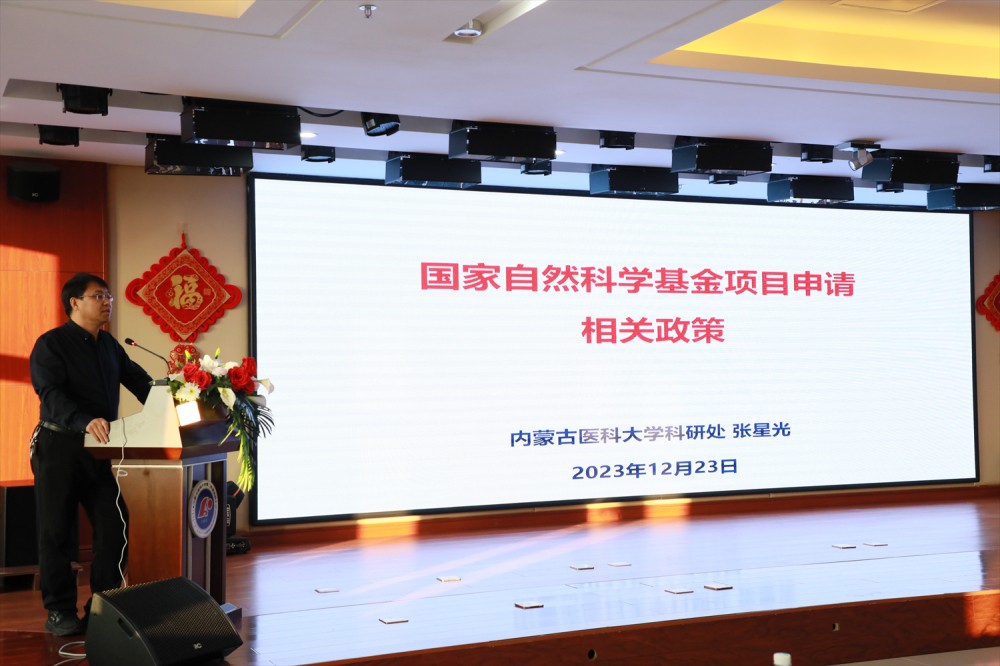 为做好 2024 年度国家自然科学基金项目申报工作,进一步提高项目申报质量,提升医院国家自然科学基金获批率,12月23日,我院联合内蒙古医科大学科研处(科技成果转化与技术转移中心)举办内蒙古医科大学科研求实论坛暨2024年国家自然科学基金申报推进会。