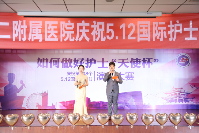急诊科护士张耀国与二病区护士侯一帆担任护士节活动的主持人。