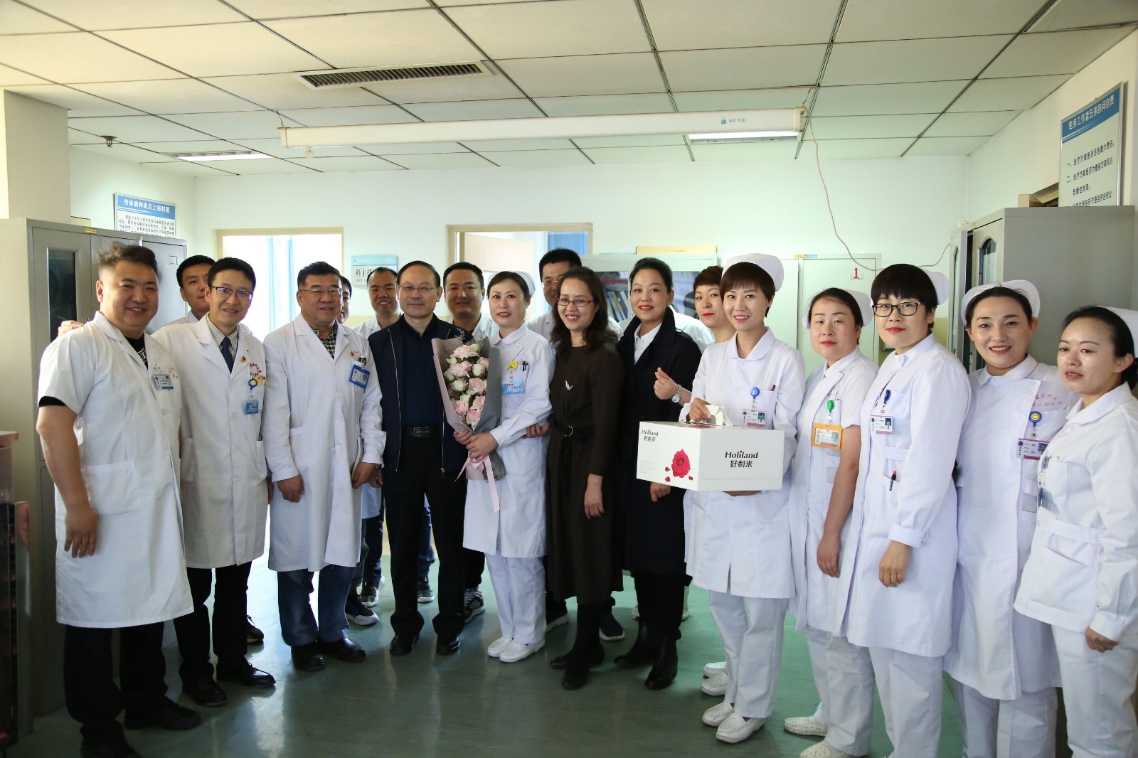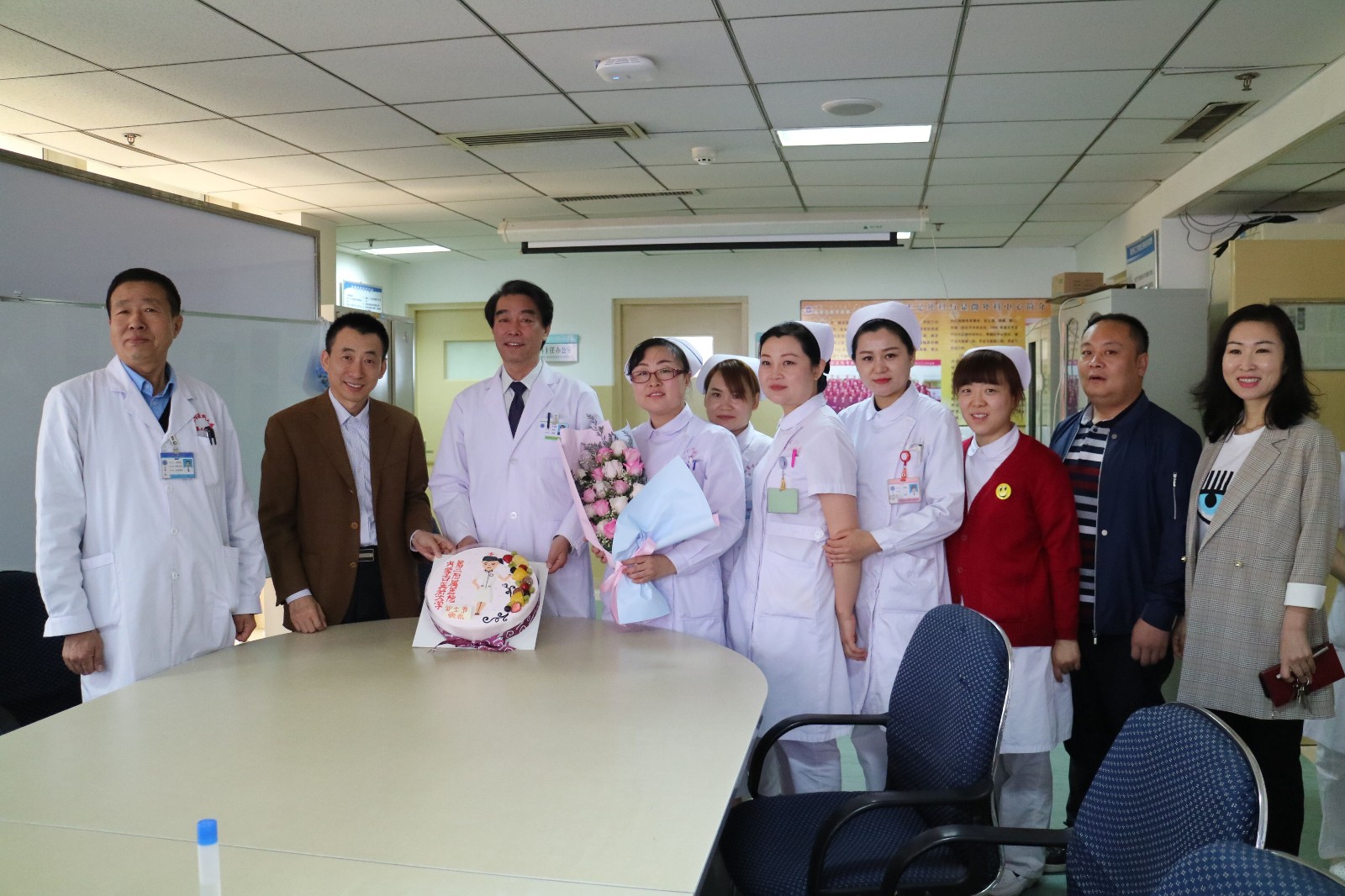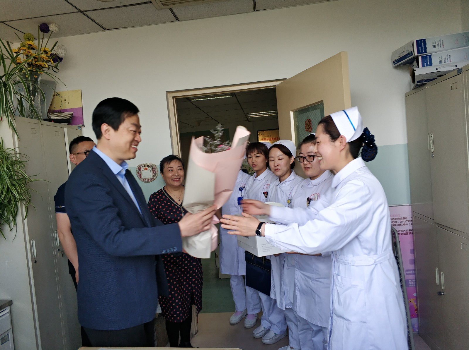 随着第108个“5.12”国际护士节的到来,内蒙古医科大学第二附属医院在2019年5月7日上午8:00,院长王国强、党委书记温树正、副院长刘万林、党委副书记杨学军、总会计师陆玉兰带领着医院各职能科室的主任到各科室为护士们送上了精美的鲜花与蛋糕,同时诚挚的祝愿忙碌在一线的护士们节日快乐!