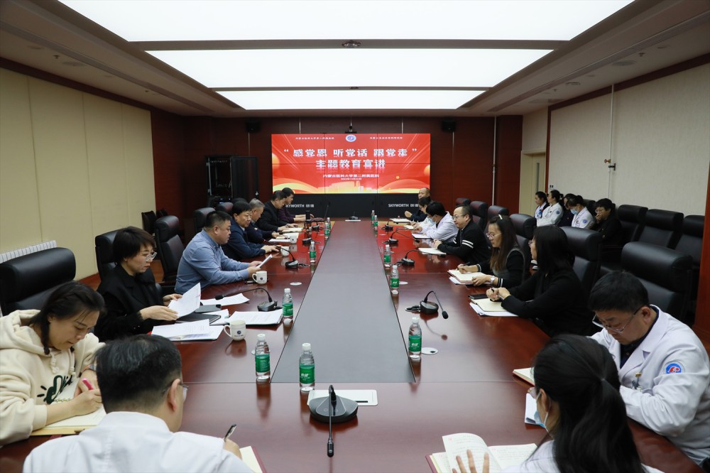 为持续深入学习贯彻习近平总书记对内蒙古的重要指示精神,进一步巩固提升主题教育成果,按照学校党委相关工作要求,12月22日,我院举办“感党恩、听党话、跟党走”主题宣讲活动。本次宣讲活动特邀内蒙古医科大学马克思主义学院副书记、副院长田锋教授作专题讲座。院领导、各党支部书记、支委参加学习。宣讲活动由我院党委委员、纪委书记跟锁主持。