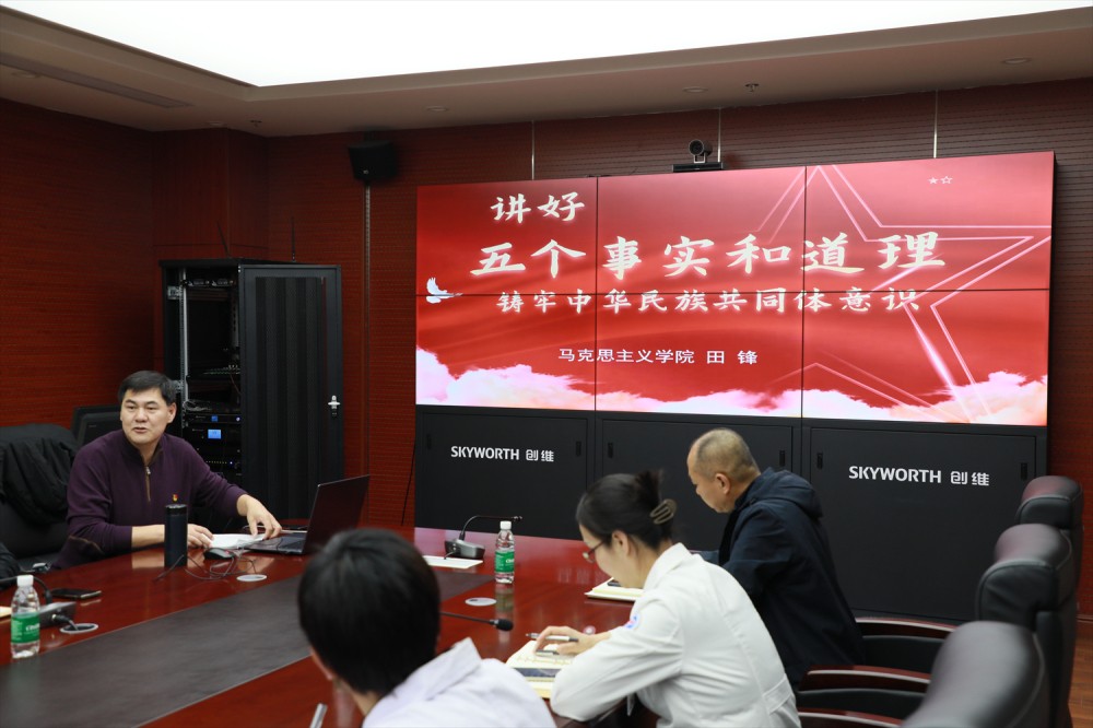 田锋教授重点围绕深刻领会把握“五句话”的事实和道理、铸牢中华民族共同体意识、深切领会体悟习近平总书记对内蒙古的关怀厚爱与期望重托,从“内蒙古地区是中国共产党最早建立党组织的民族地区”“内蒙古自治区是在中共中央的直接领导下建立的”“内蒙古是在党中央的支持下发展起来的”“内蒙古工作中出现的重大偏差都是党中央帮助纠正的”“内蒙古作为‘模范自治区’模范就模范在听党的话上”五部分内容进行了系统解读和深入阐释。讲座内容丰富、见解独到、分析透彻,具有很强的针对性、指导性和实践性。
