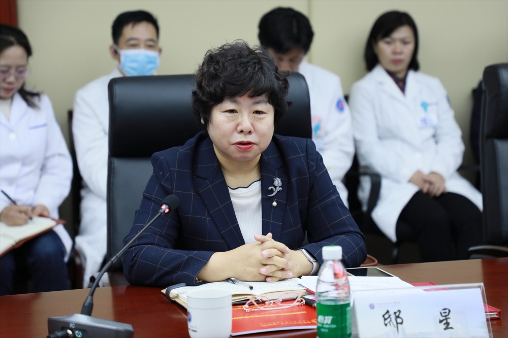 会上,邱颐院长首先对专家组一行莅临我院检查指导工作表示热烈欢迎。党委副书记赵岩分别从医院基本情况、各申报专业基本情况以及临床教学三方面对医院住培基地申报工作进行汇报。